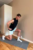 - Spänn bålen och sänk dig ner som om du skulle sätta dig på en stol.